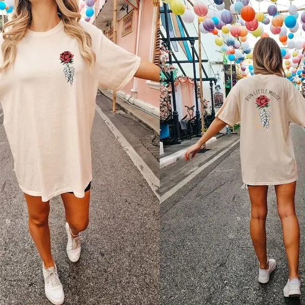 2 Slides, Run Little Mouse tshirt, Haunting Adeline Shirt, Dark Romance Merch, Smut Reader, Women's Book Lover Gift, Rose Skeleton Shirt, Womenswear Shortsleeve Crewneck Cotton Casual Top Fit