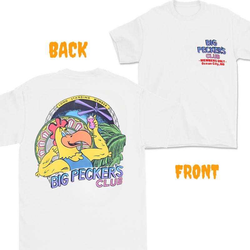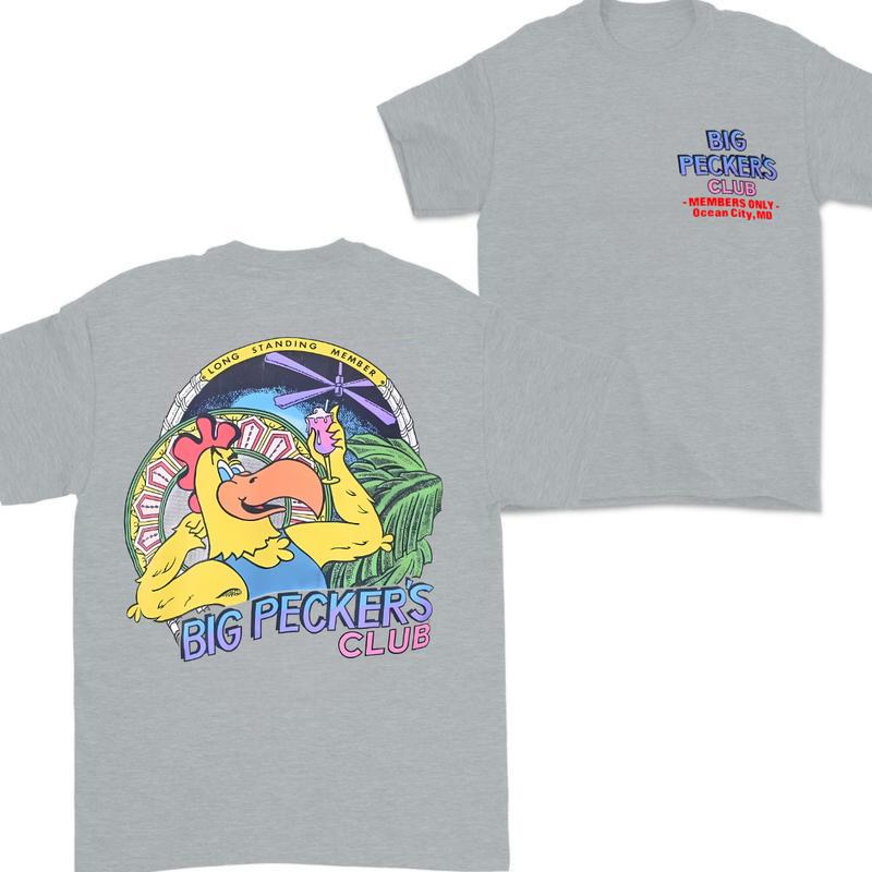 Big Peckers Club Ocean City Maryland Member Only Rooster Funny t-shirt Large,Funny Tee, Vintage Tee, Unisex