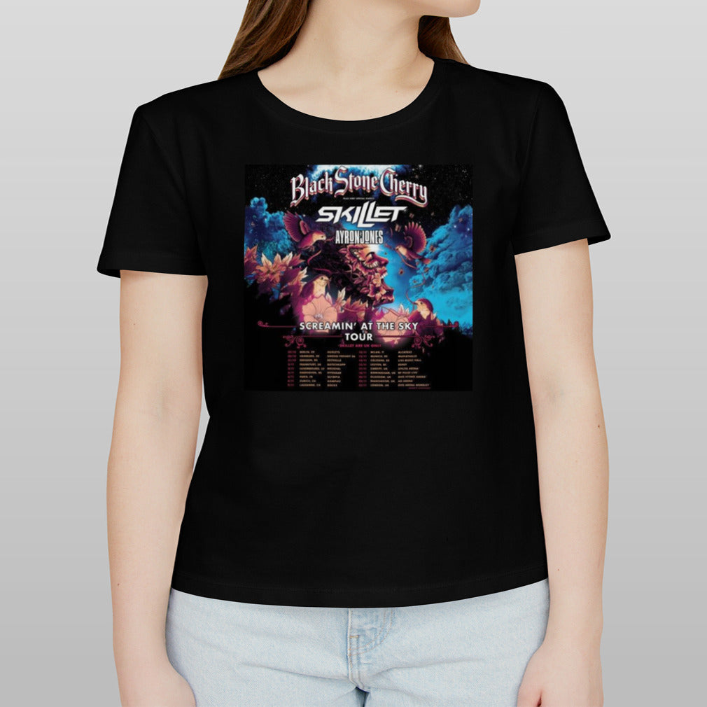 Black Stone Cherry Poster Plus Very Special Guests Skillet And Ayron Jones Screamin At The Sky Tour 2024 Shirt
