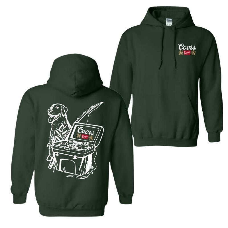Coors Banquet Hoodie, Fishing Scene with Dog & Cooler 2 sided Hoodie and T-shirt, Unisex Hoodie