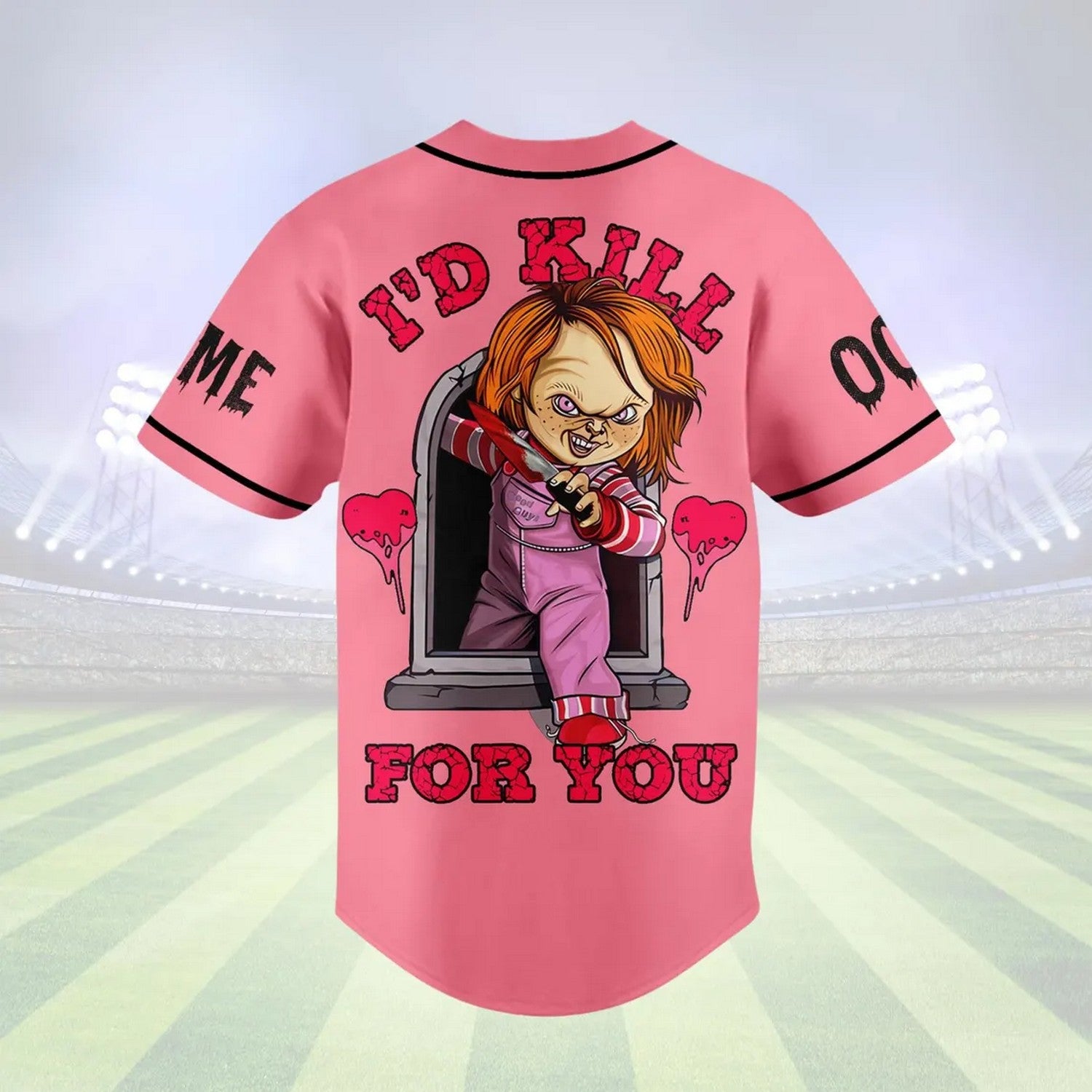 Custom Name Chucky Be Mine I'd Kill For You Pink Baseball Jersey