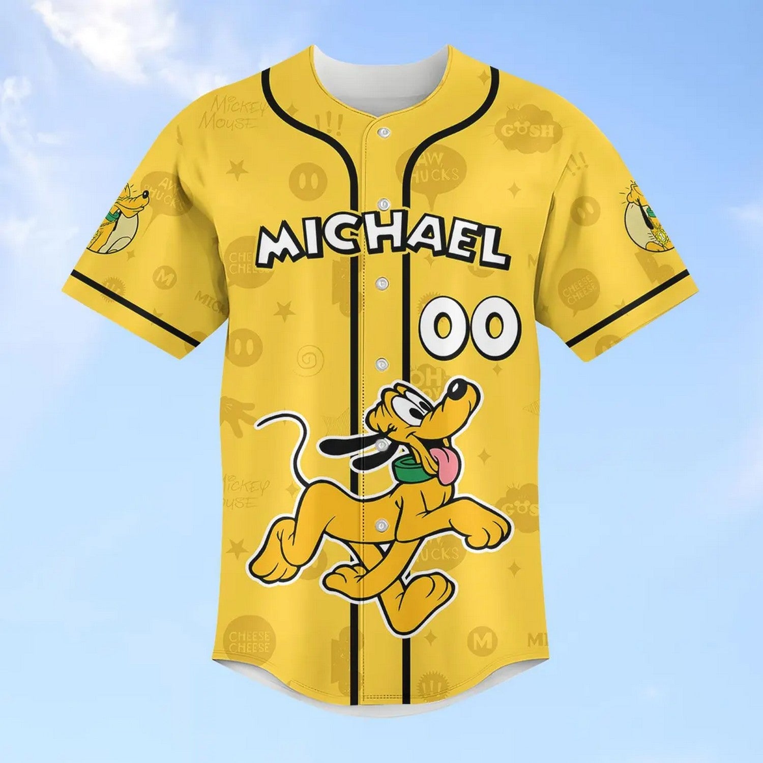Custom Name Funny Pluto Dog Yellow Baseball Jersey