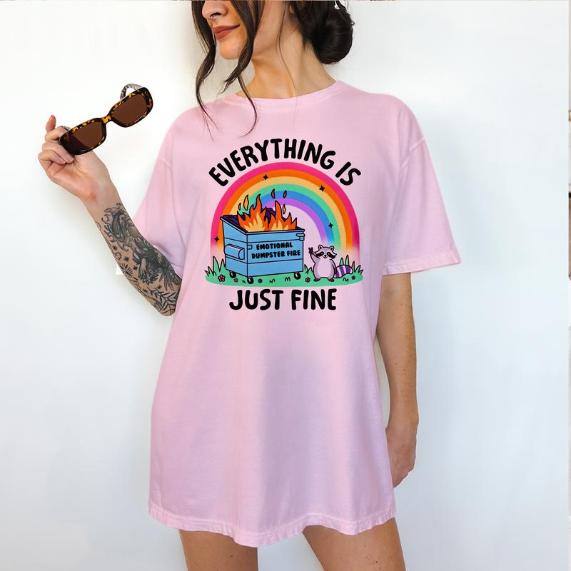 Dumpster Fire Raccoon - T-Shirt - Print is Sublimation, Unisex T-Shirt, Funny Tee,Gift Idea, Relaxed Fit, Casual Apparel, Great with Jeans, Womenswea