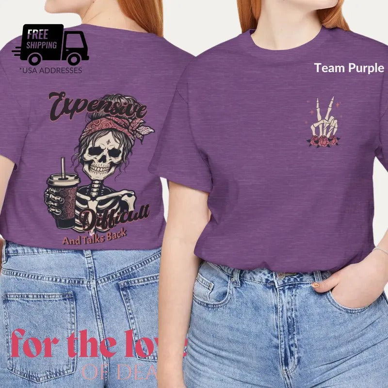 Expensive And Difficult And Talks Back Shirt Trendy Front And Back Design Funny Womens Shirt Sarcastic Wife Tee Mothers Day Humor Gift Cotton Top