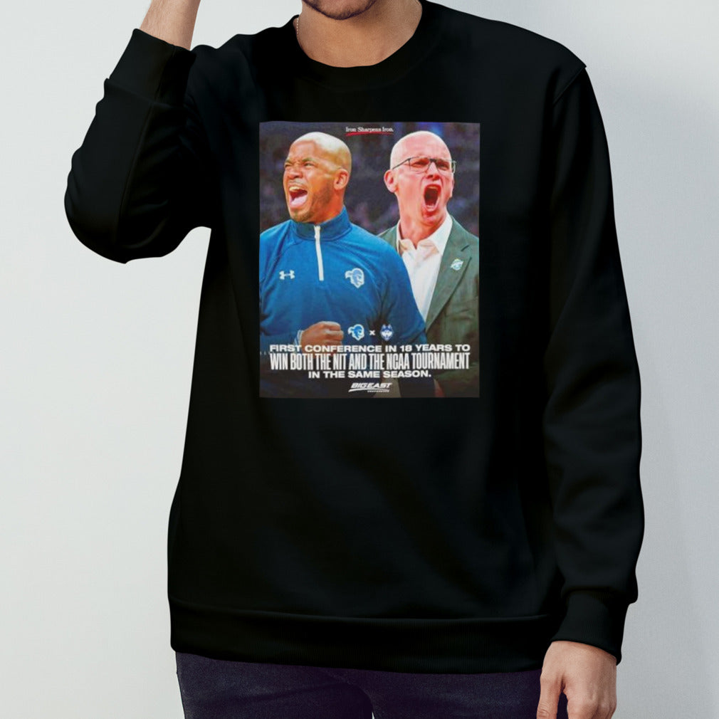 First conference in 18 years to win both the NIT and the NCAA tournament in the game season shirts