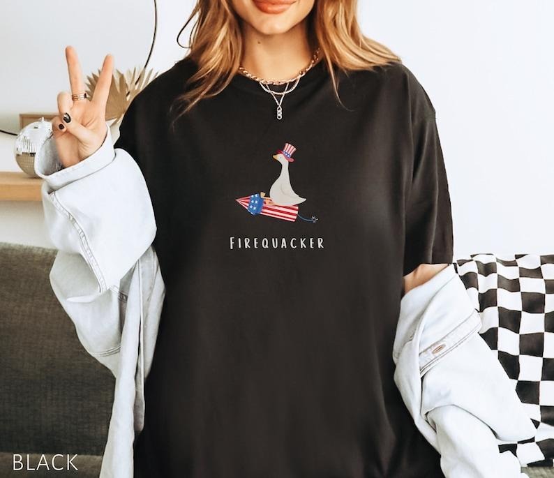 Funny Fourth Of July Tshirt, Funny Goose Shirt, Independence Day Tee, USA Shirt, Patriotic Tshirt,Firequacker Shirt,Silly Gift