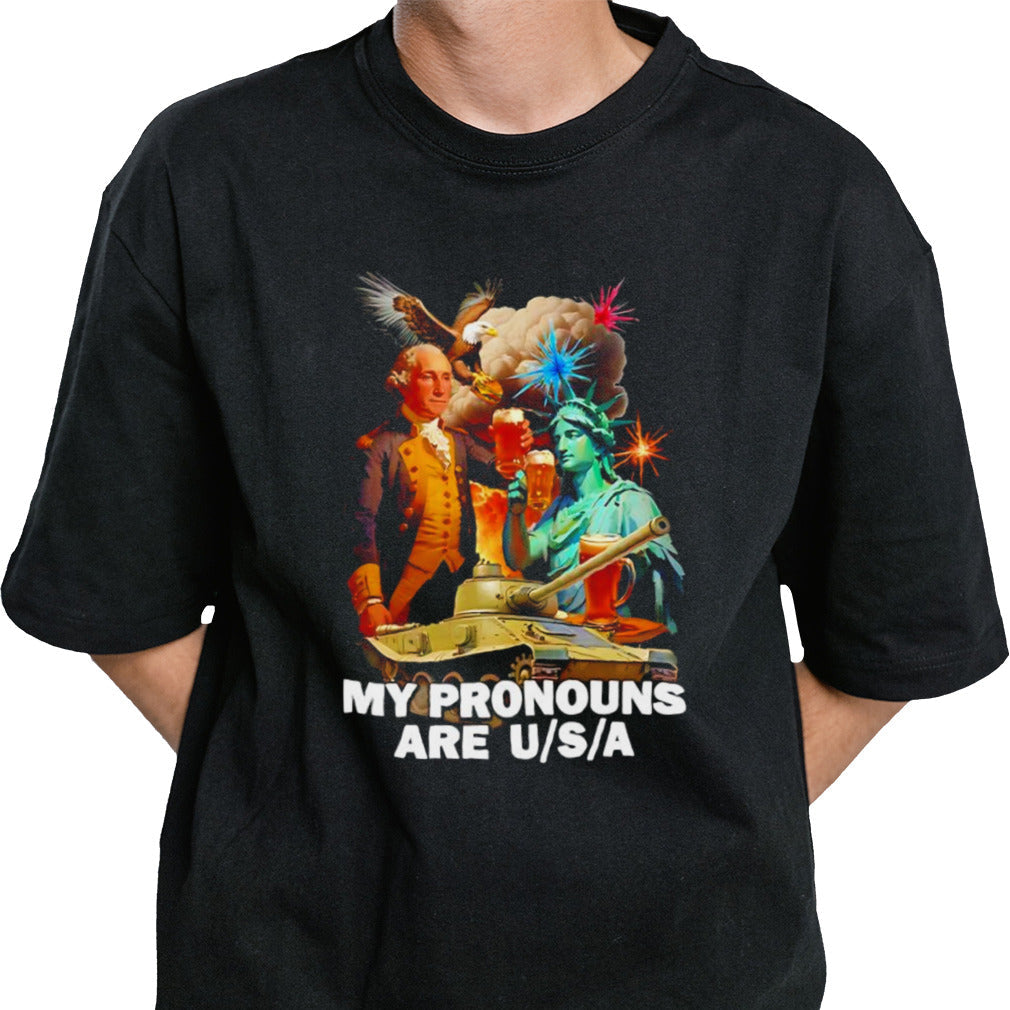 George Washington Statue of Liberty tank beer my pronouns are USA shirt
