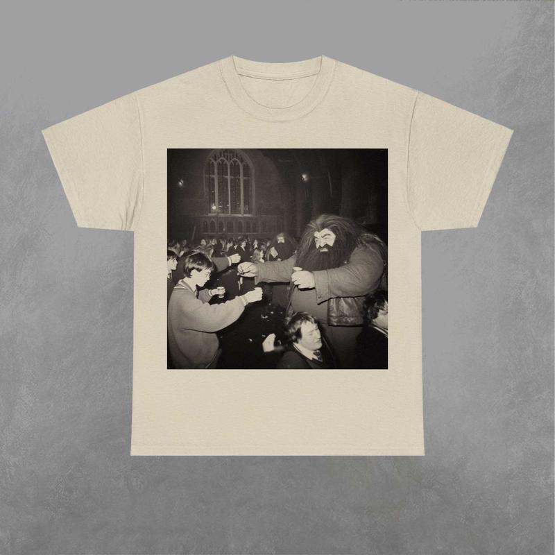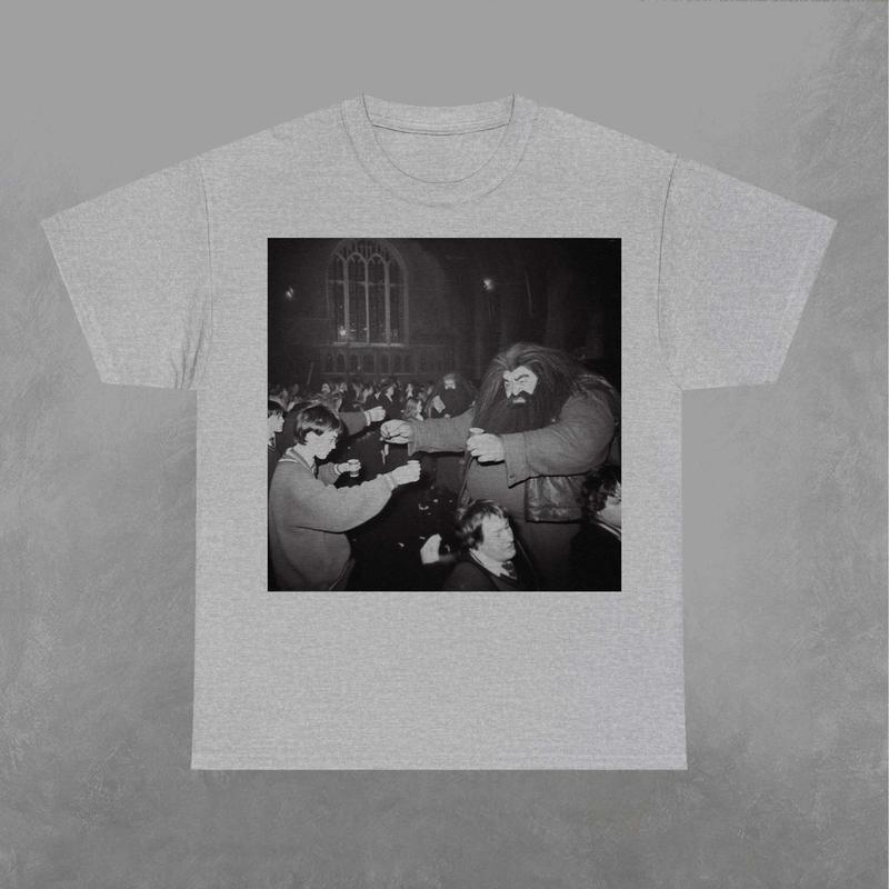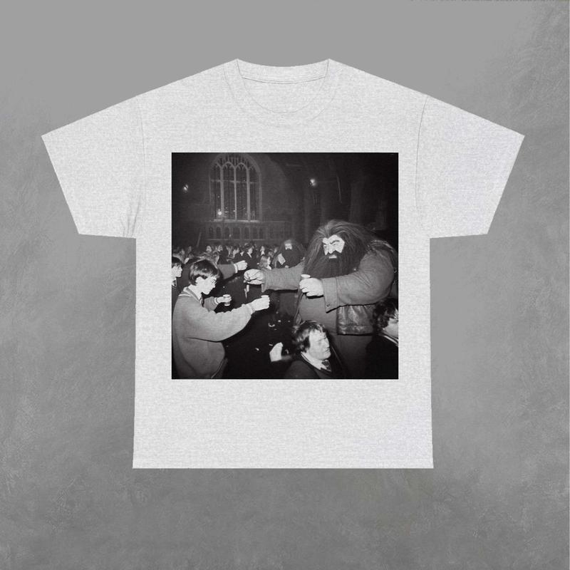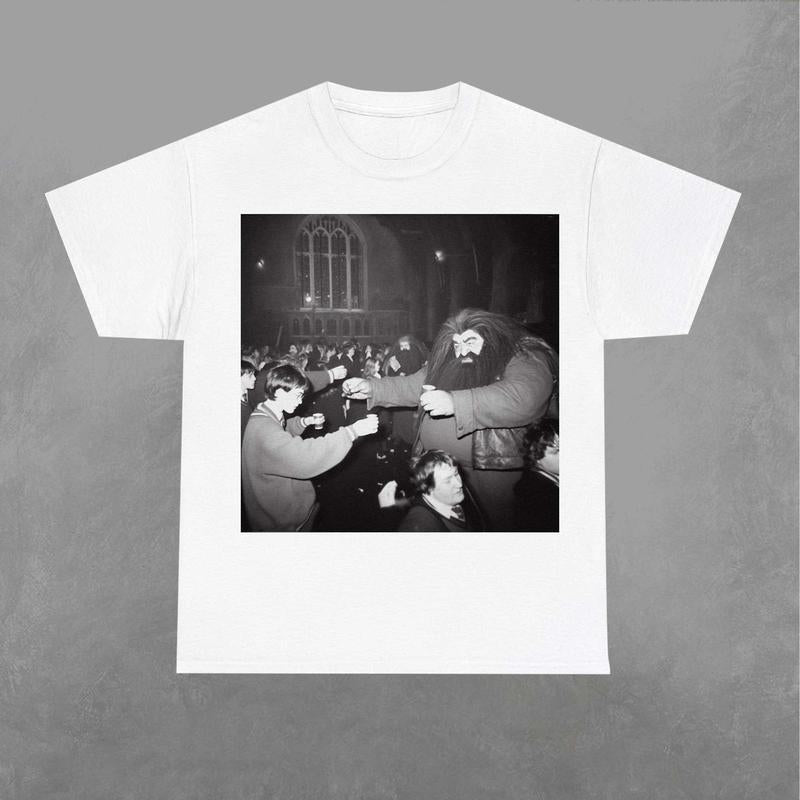 Hagrid and Potter Cheering Shirt, Wizard House Shirt, Wizarding Fan, Retro Funny Movie Graphic Shirt Classic Fabric