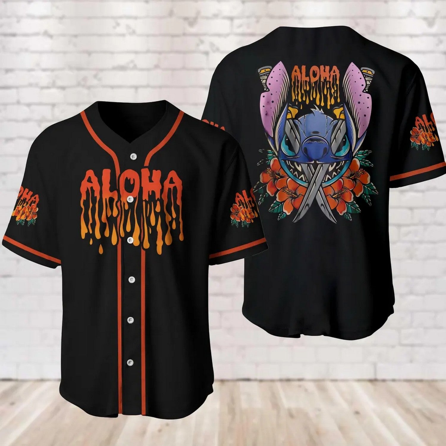 Halloween Lilo & Stitch Black Baseball Jersey