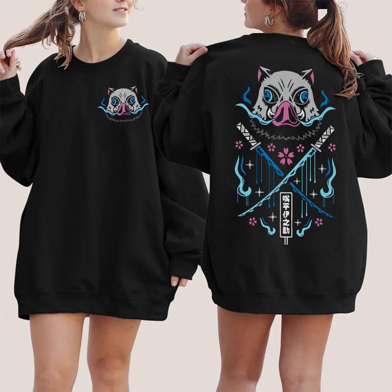 Inosuke Hashibira with his sword Dual Serrated Nichirin Katanas shirt, Demon Slayer t-shirt, Anime sweatshirt hoodie, Anime lover t-shirt