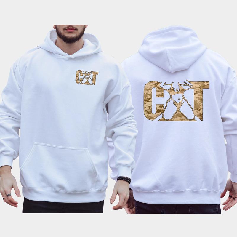 Men's Camo Cat Woman Hoodie 2-Sided, Cat with Women Sweatshirt for Men, Cotton Long Sleeve Pullover, Funny Adult Humor Tops, Classic Casual Menswear