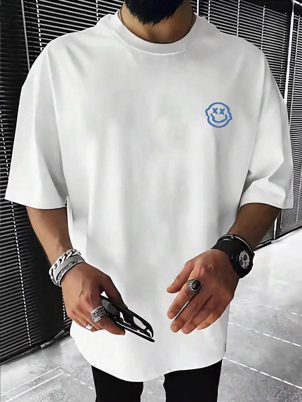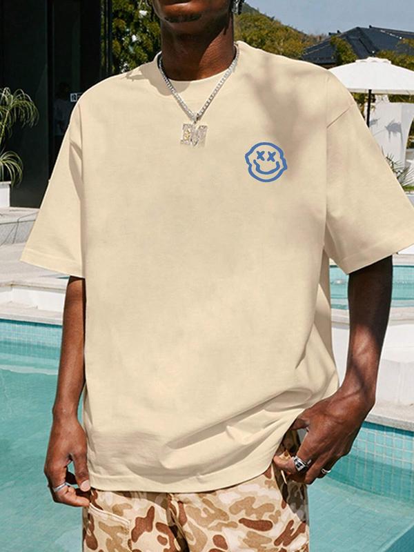 Men's Cartoon Expression & Letter Print Drop Shoulder Tee, Summer Outfits 2024, Regular Fit Casual Short Sleeve Round Neck T-Shirt for Summer, Graphic Tees for Men, Back To School Clothes, T Shirts for Men, Men Streetwear Graphic Tees
