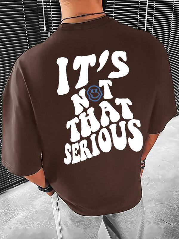 Men's Cartoon Expression & Letter Print Drop Shoulder Tee, Summer Outfits 2024, Regular Fit Casual Short Sleeve Round Neck T-Shirt for Summer, Graphic