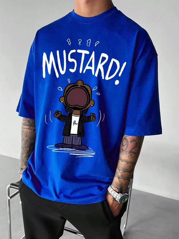 Men's Cartoon & Letter Print Short Sleeve T-Shirt, Regular Fit Casual Funny Graphic Round Neck Tee for Summer, Men's Top for Daily Wear
