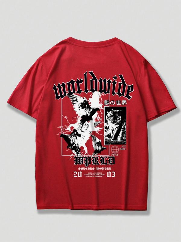 Men's Letter & Animal Graphic Print Round Neck Tee, Regular Fit Casual Short Sleeve T-shirt for Summer, Men's Top for Daily Wear