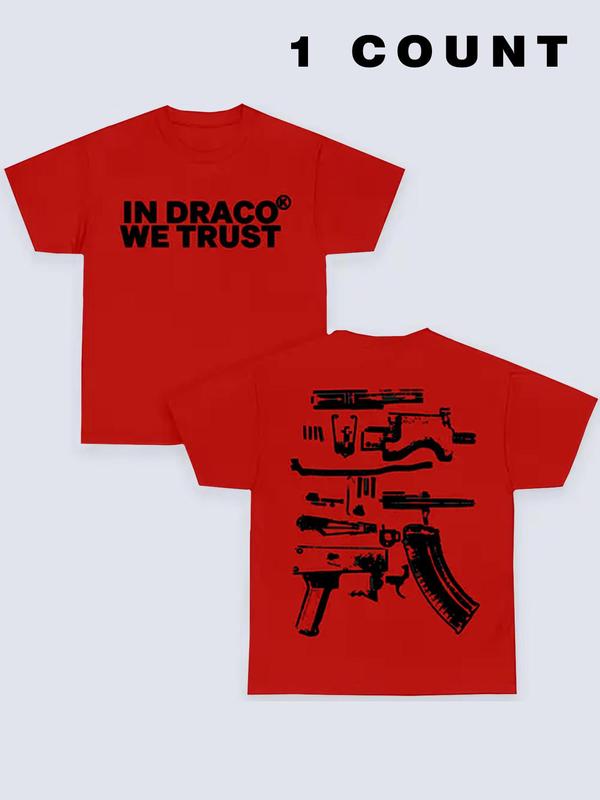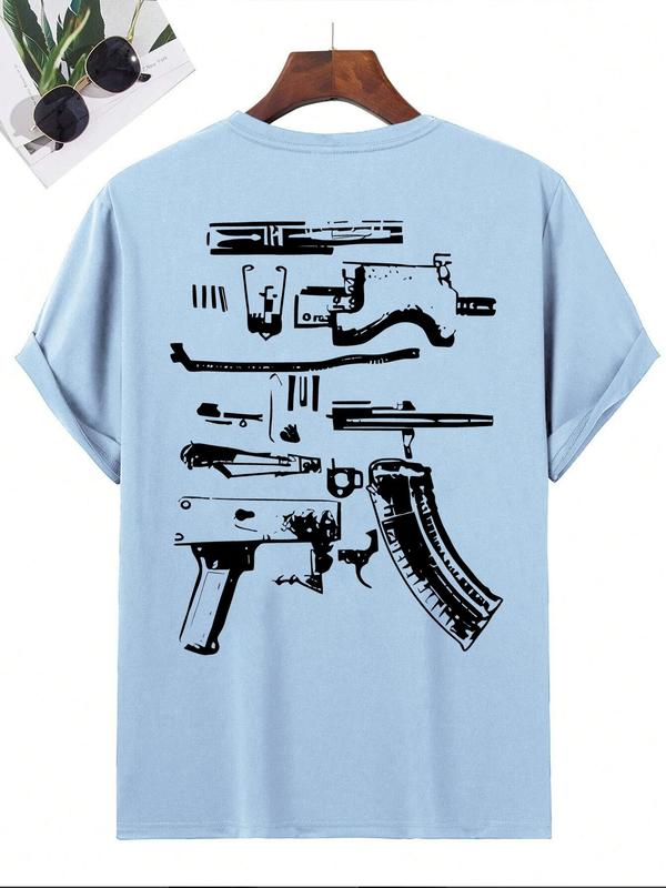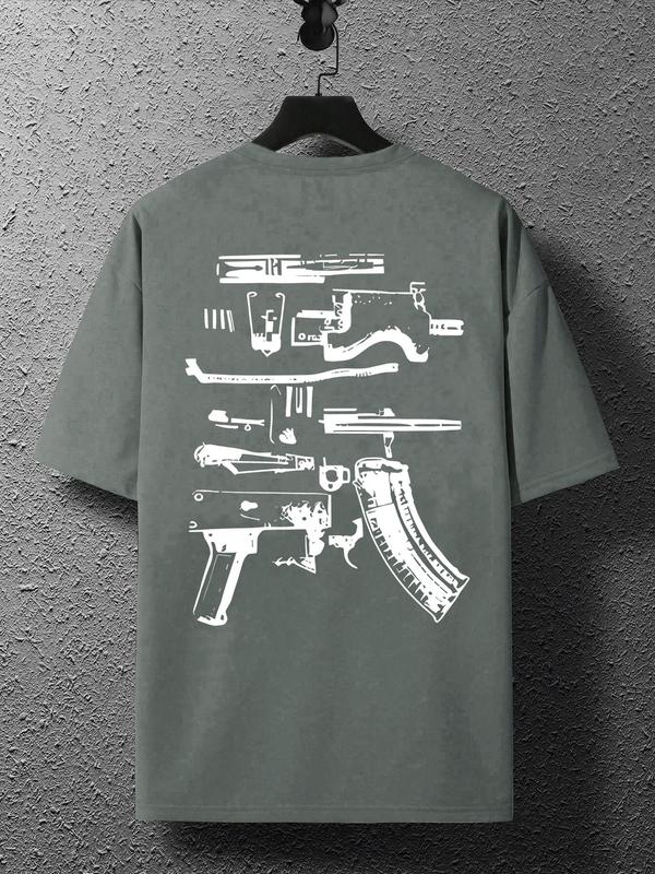 Men's Letter Graphic Print Round Neck Tee, Regular Fit Casual Drop Shoulder Short Sleeve T-shirt, Men's Summer Top for Daily Wear, Black Girl Outfits, 90s Clothes