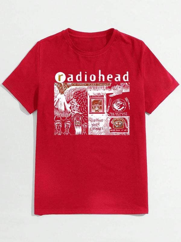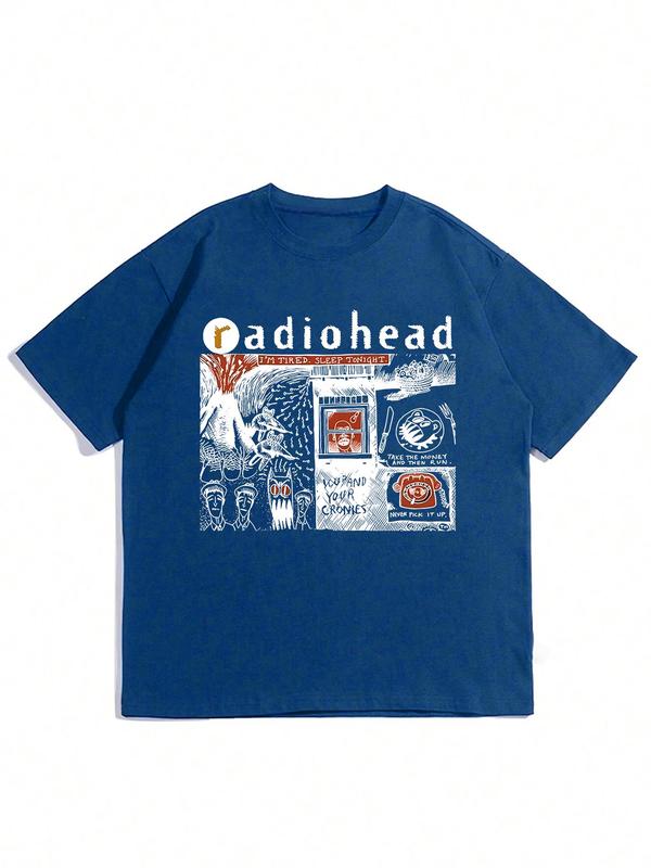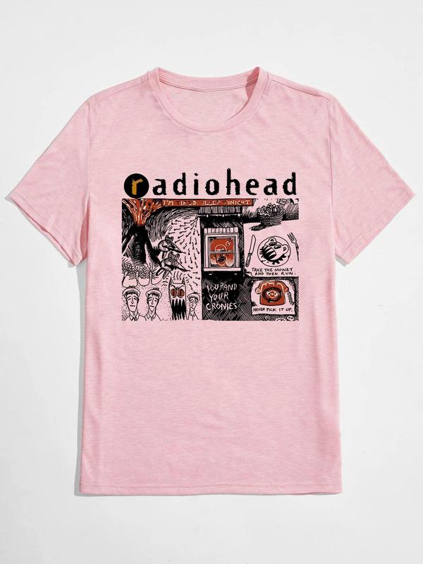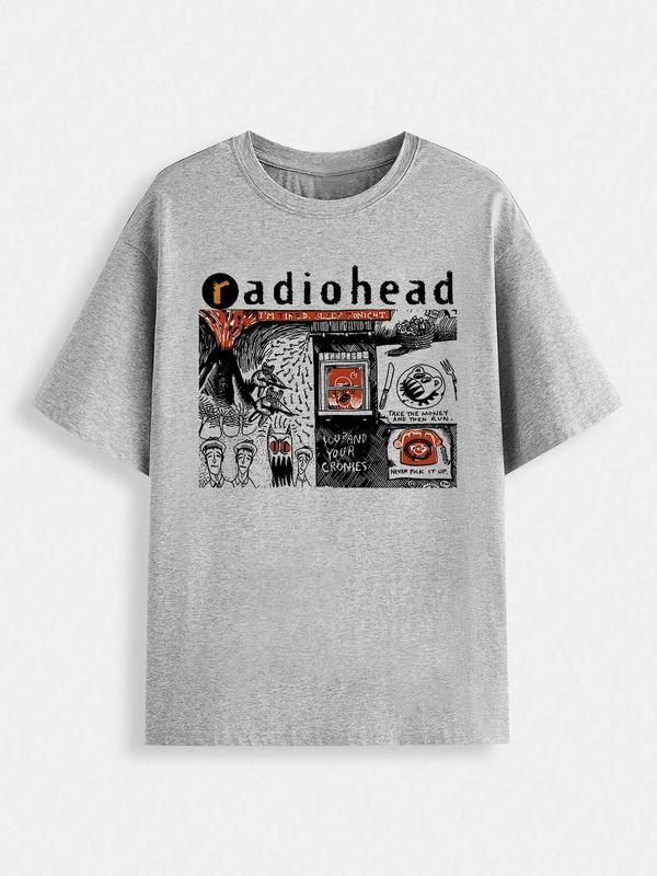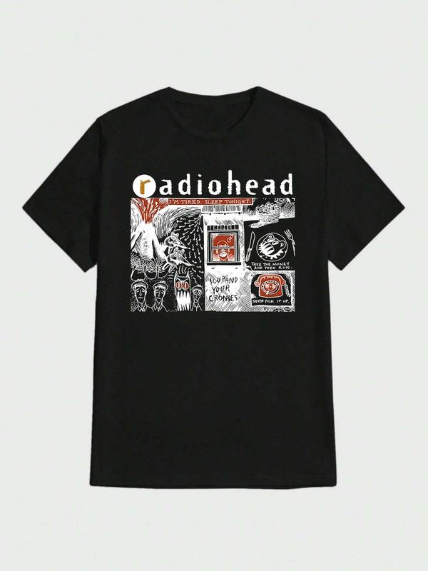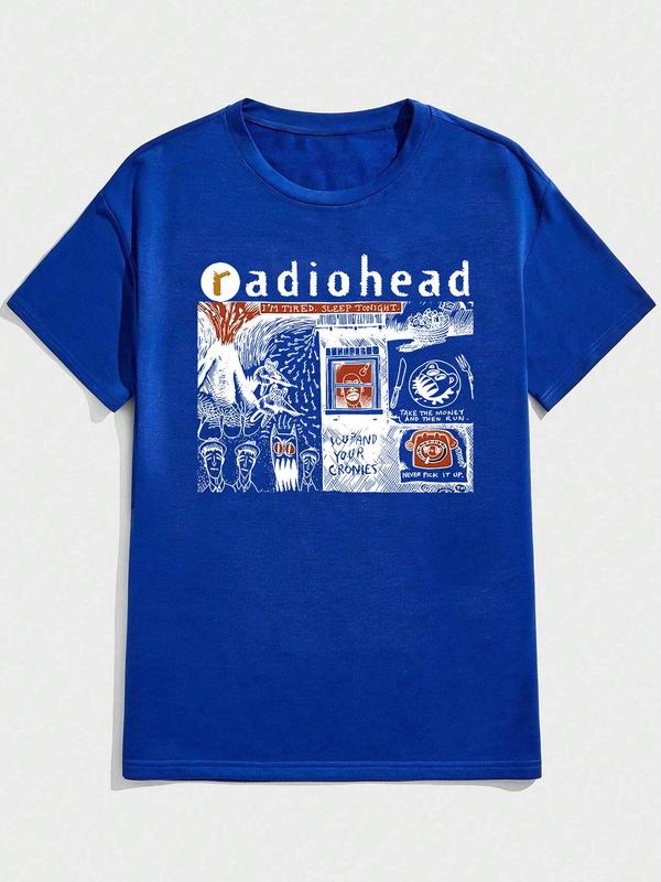 Men's Letter & Graphic Print Round Neck Tee, Regular Fit Casual Short Sleeve T-shirt, Men's Summer Top for Daily Wear