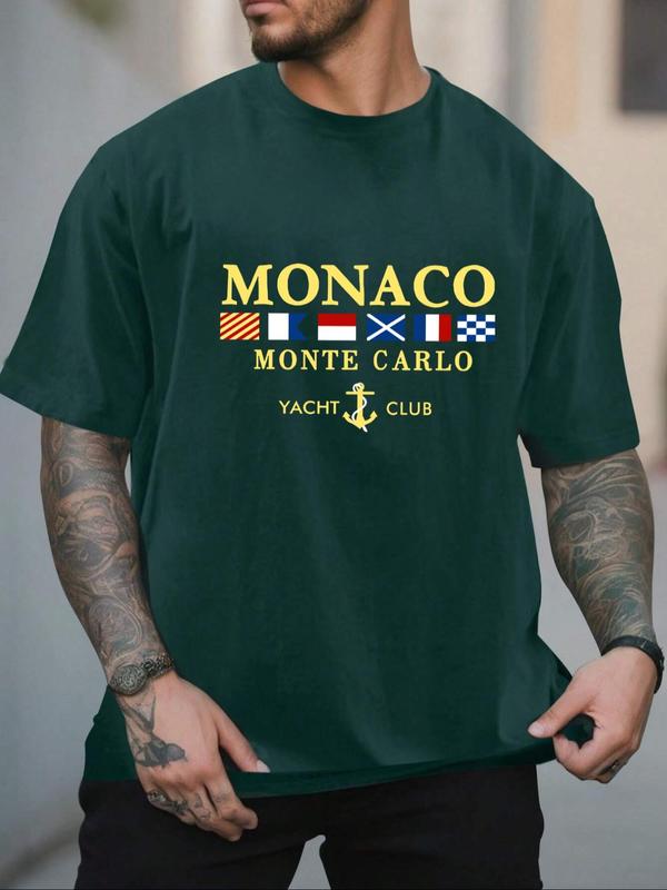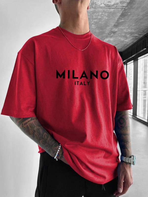 Men's Letter Print Round Neck Tee, Regular Fit Casual Comfy Streetwear Drop Shoulder Short Sleeve T-shirt for Daily Wear, Graphic Tees, Men's Summer Clothes