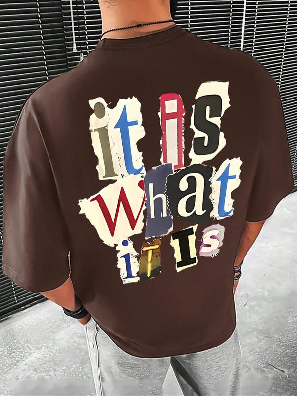 Men's Letter Print Round Neck Tee, Regular Fit Casual Short Sleeve T-shirt, Graphic Tees, Streetwear, Summer Clothes, Men Summer Top