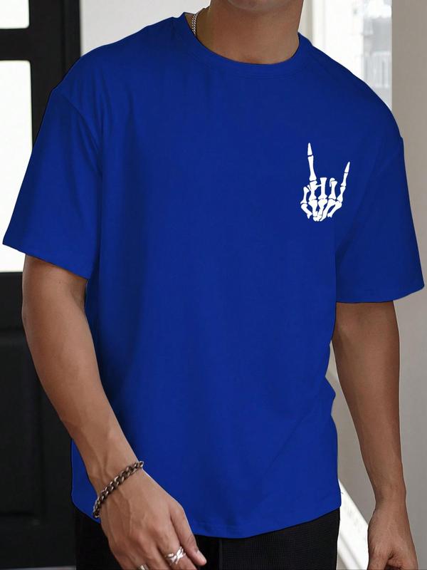Men's Regular Fit Letter & Skeleton Print Drop Shoulder Tee, Back To School Outfits, Street Fashion Casual Streetwear Round Neck Short Sleeve T-Shirt For Daily Wear, Menswear, Graphic Tees, Summer Outfits 2024