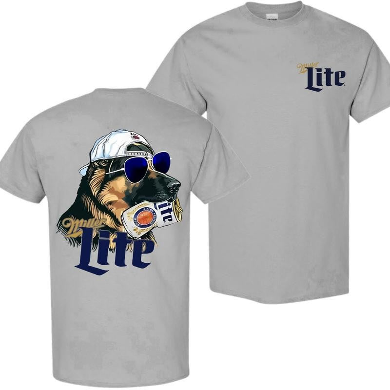Miller Hunting German Shephered Dog Dog 2 Siders T-shirt, Miler Lite T-shirt, Perfect For Beer Lovers, Unisex for Men and For Women Classic Cotton