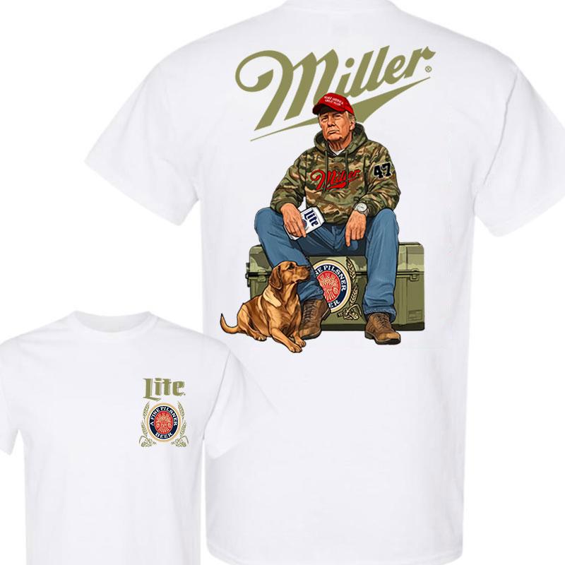 Miller Litee Trump Hunting Camo Unisex shirt, Trump won 47th president Election 2024 shirt, Miller Litee Fuel Hand Drill Dog Hunt Tee, Trump With Local Boy Cotton shirt Full Color Full Size