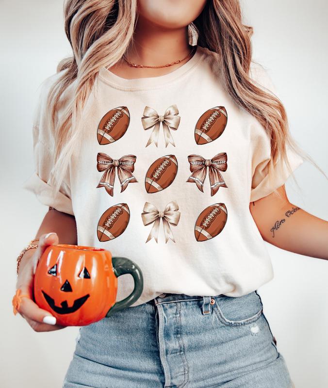 Pink Coquette Football Shirt, Football Mom Shirt, Sports Mom Gift, Gameday Shirt, Football Gift Shirt, Pink Coquette Shirt, Football Bow Tee, Cotton R