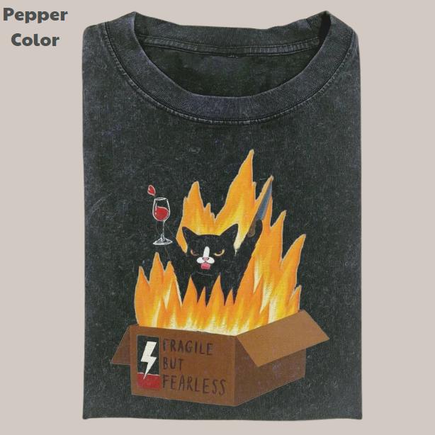 Retro Funny Vintage Graphic Tee, Fragile But Fearless Cat T-Shirt, Unisex Meme Cringe Funny Dumb Shirt, Menswear Womenswear Streetwear