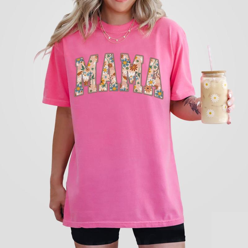 Retro Mama Floral Shirt, Mama Graphic Tee, Cute Gardener Mama Shirt Gift For Mom, Flower Mama Shirt, Floral Mama Shirt, Flower Lover Mama Shirt, Mom Birthday Gift From Daughter, Mom Women Tops Casual Comfort Womenswear Boho Comfortable T-Shirt