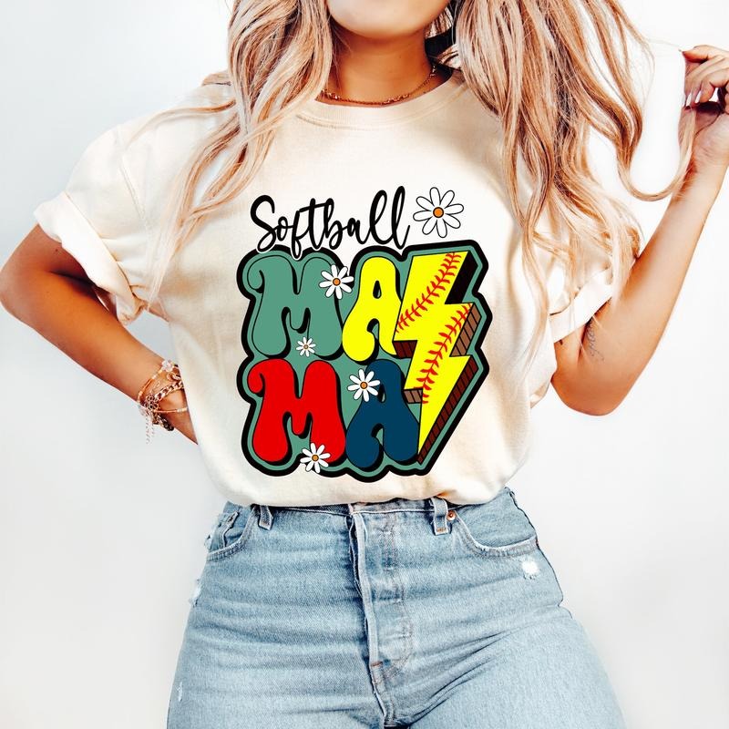 Retro Softball Mama T-Shirt, Softball T-Shirt, Sports T-Shirt, Trendy Retro Mom T-Shirt,