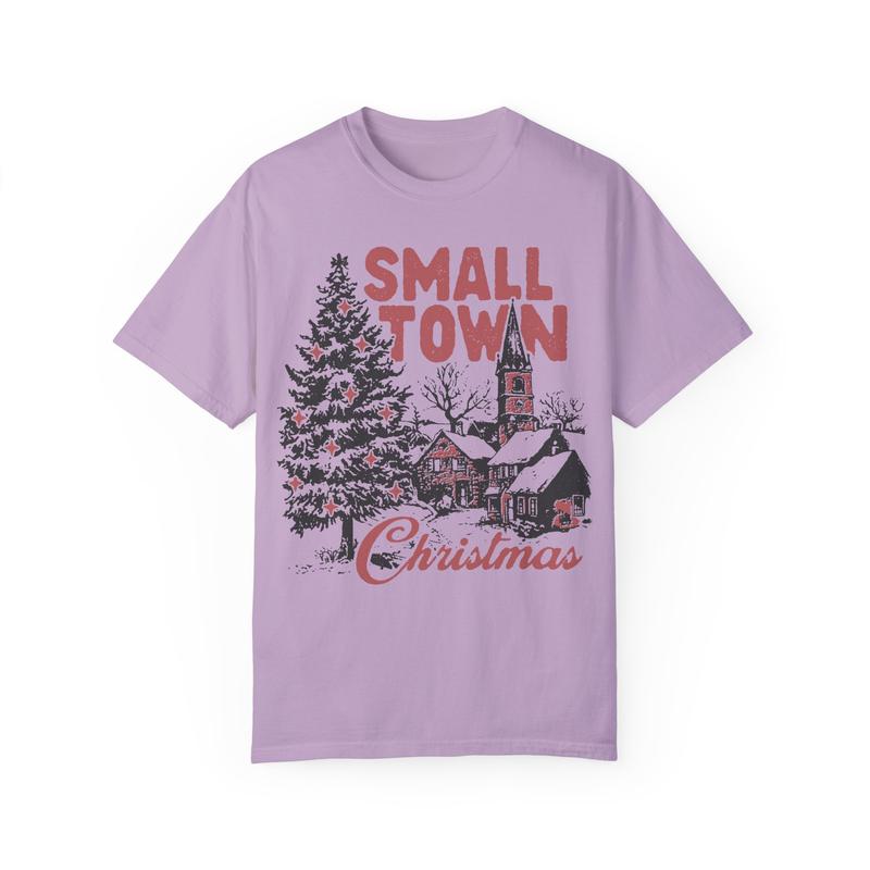 Small Town Christmas Unisex Garment-Dyed T-shirt - Christmas Shirt - Countryside - Small Town Shirt - Snow - Christmas Tree - Gift for Men and Women