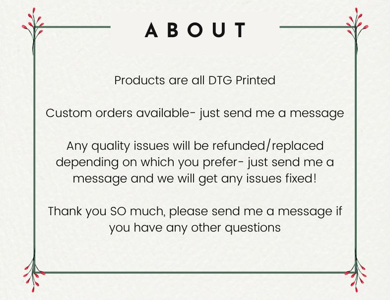 - No returns or exchanges for wrong size choices, as all products are made to order. Please double-check before purchasing.