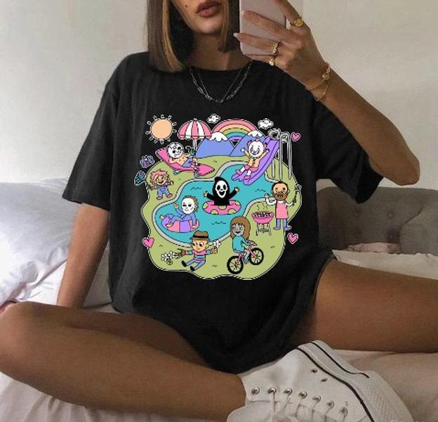 The Kids Horror Pool Party Halloween Characters T-Shirt Horror Movie Funny Times Shirt