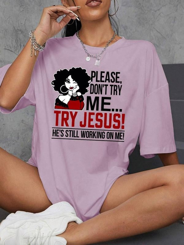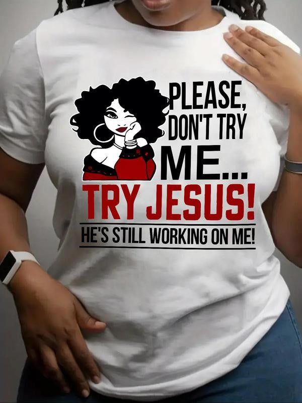 Women's Cartoon Figure & Letter Print Round Neck Tee, Graphic Tees, Fashion Casual Crew Neck Short Sleeve T-Shirt for Daily Holiday Vacation Outdoor Wear, Ladies Clothes for Summer
