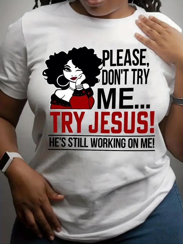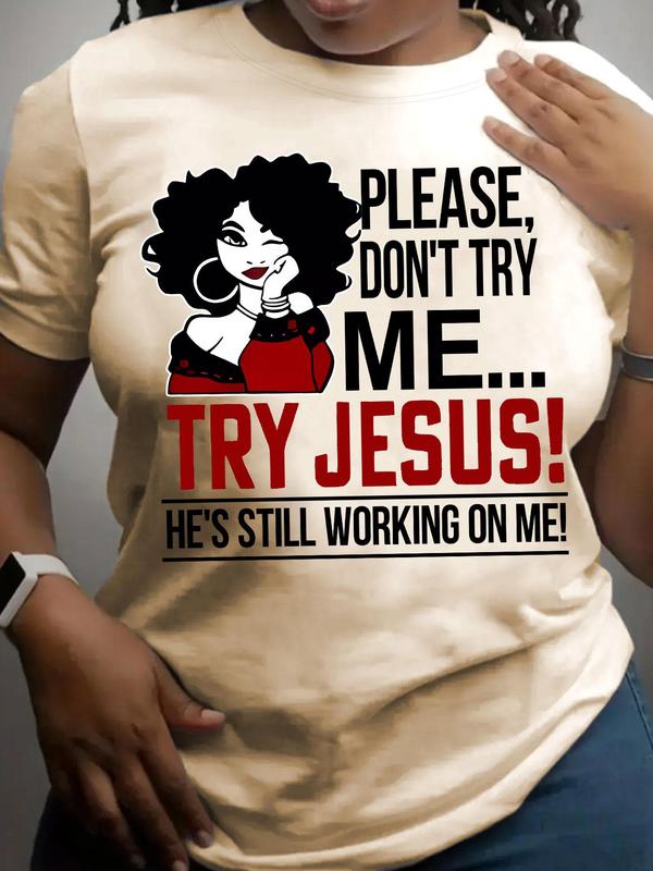Women's Cartoon Figure & Letter Print Round Neck Tee, Graphic Tees, Fashion Casual Crew Neck Short Sleeve T-Shirt for Daily Holiday Vacation Outdoor W