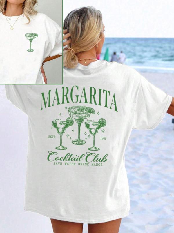 Women's Cartoon Graphic Print Round Neck Tee, Fashion Casual Drop Shoulder Short Sleeve T-shirt, Ladies Summer Clothes for Daily Wear