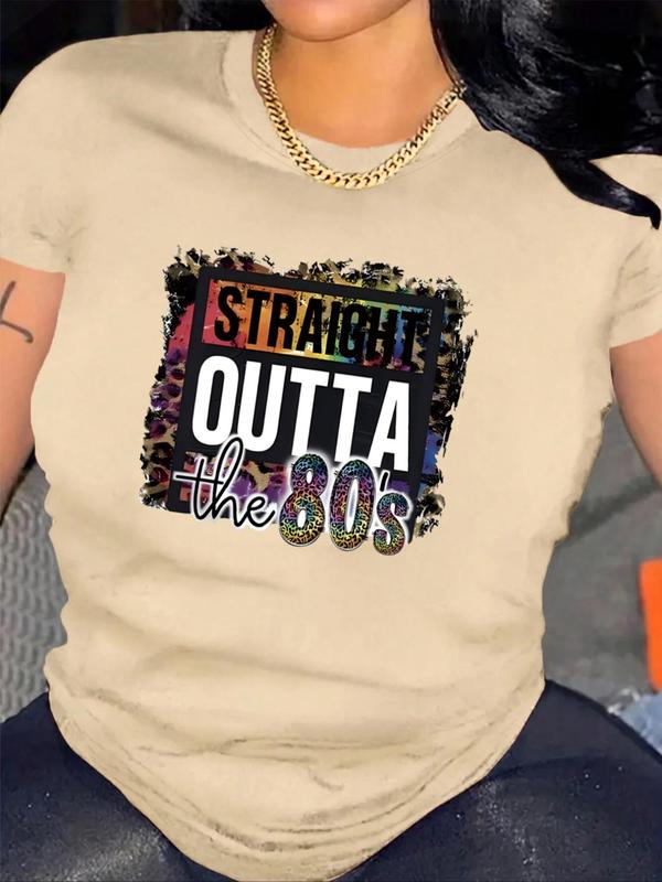 Women's Letter Print Round Neck Short Sleeve Graphic Tee, Casual Crew Neck T-Shirt for Daily Holiday Vacation Outdoor Wear, Tee Shirts for Women, Top,