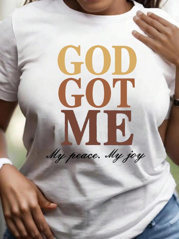 Women's Letter Print Round Neck Tee, Summer Clothes Women, Short Sleeve Crew Neck T-Shirt for Summer, Women's Top for Casual Wear